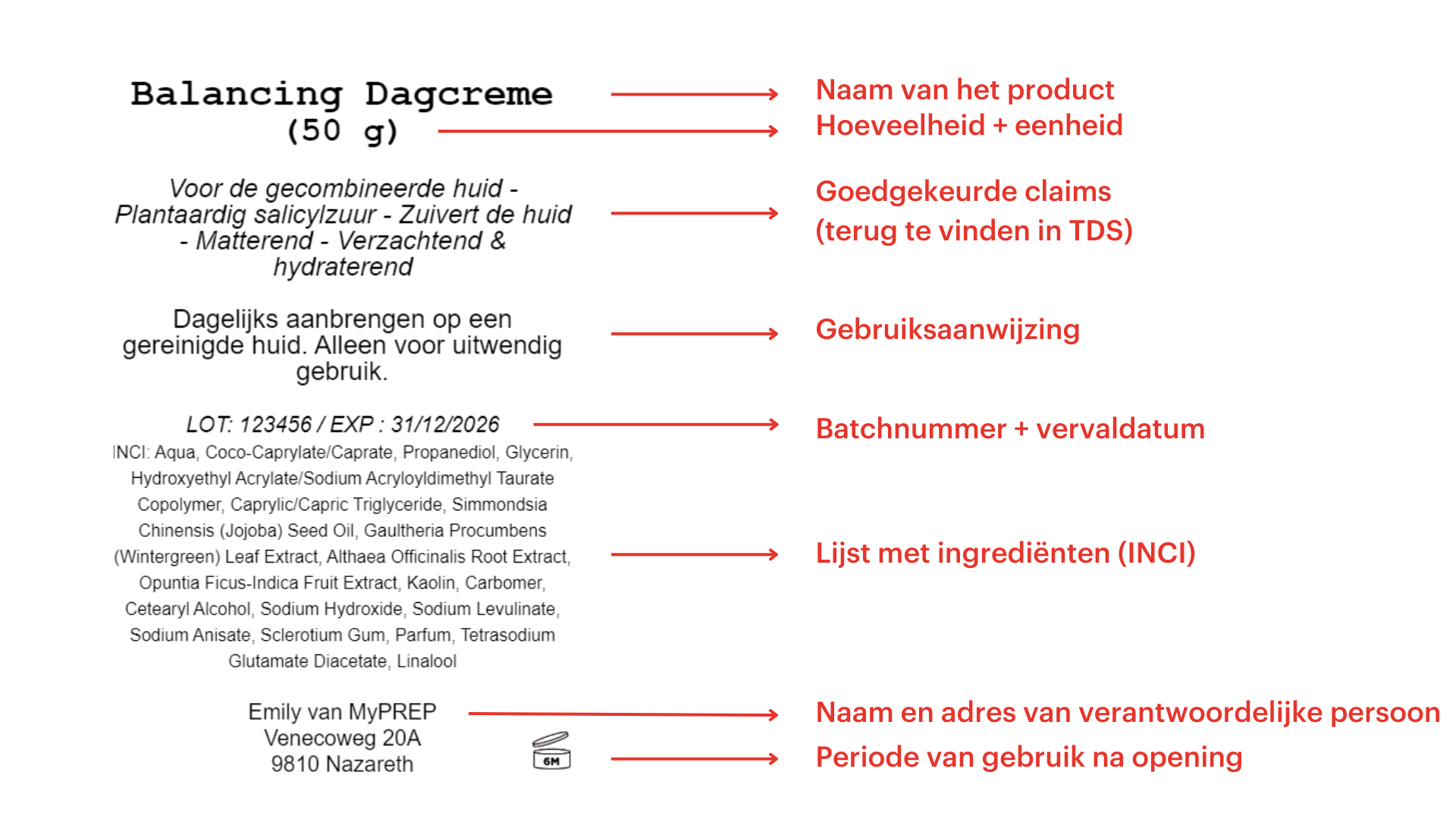 - Lijst met ingrediënten (volgens INCI benaming)